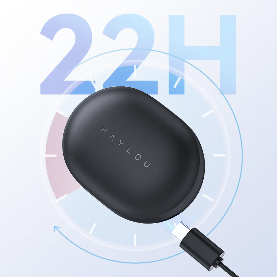 The Haylou GT7 Neo can operate up to 6.5 hours for a single full charge. With the assistance of a charging case, total battery life can be up to 22 hours.