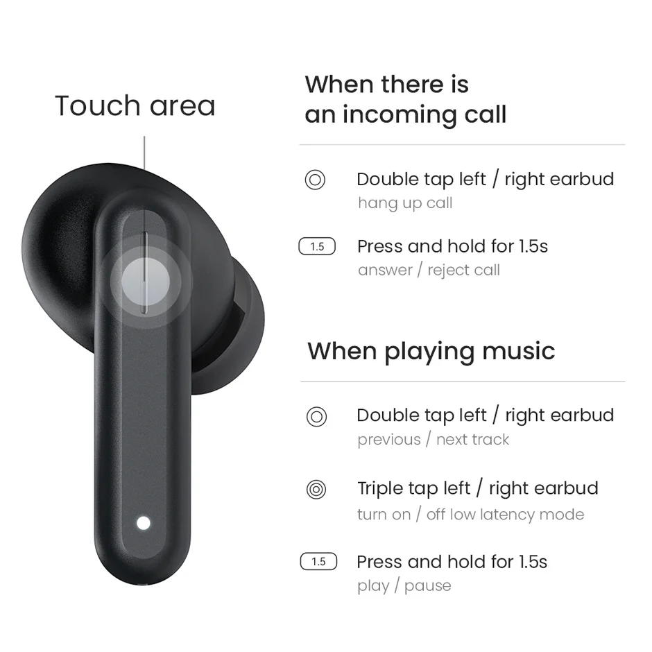 Double tap the left earbud to activate low-latency gaming mode. Immerse in your game and slay the enemy without being noticed!